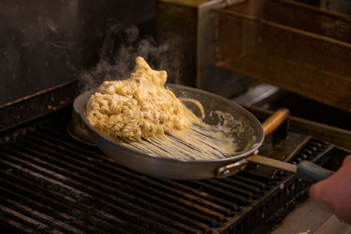 Our famous homemade mac-n-cheese over a butter base