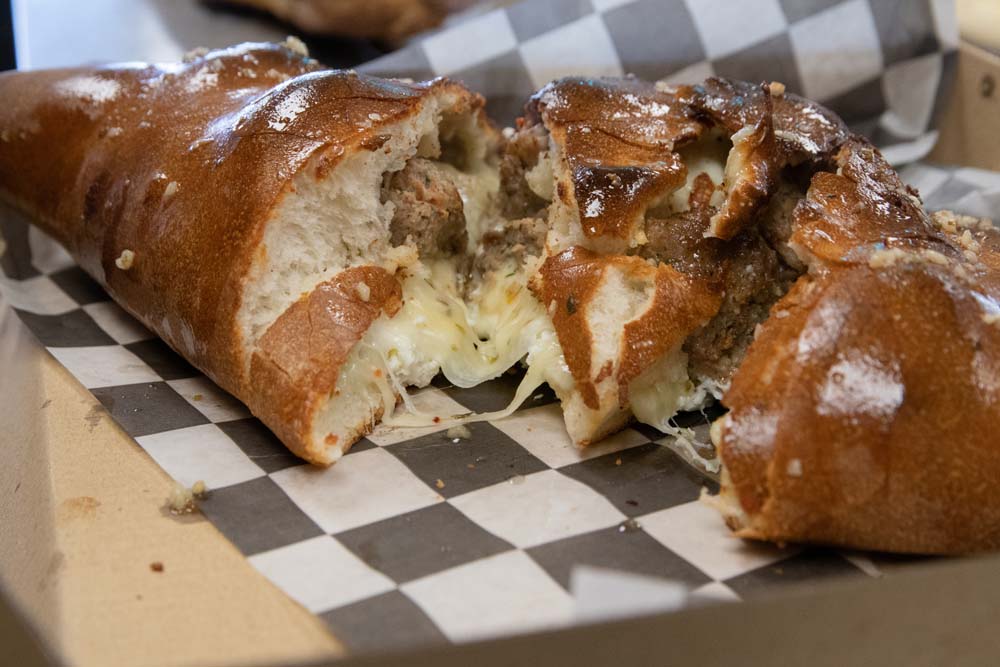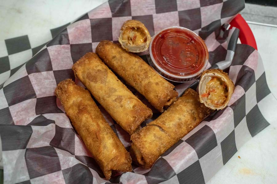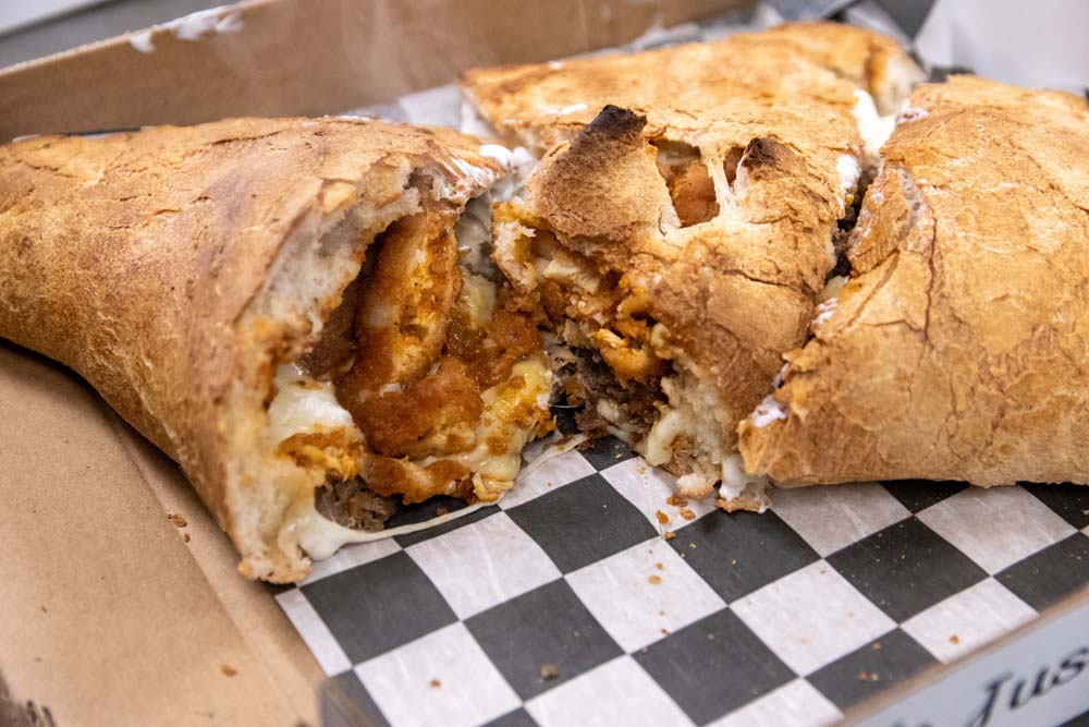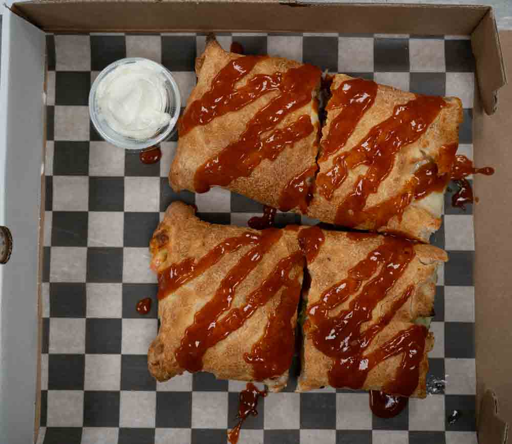 Chopped burger, bacon crumbles, diced tomato, onion, and dill pickle with yellow american and mozzarella cheeses in a homemade stromboli. Served with 1,000 island dressing on the side.